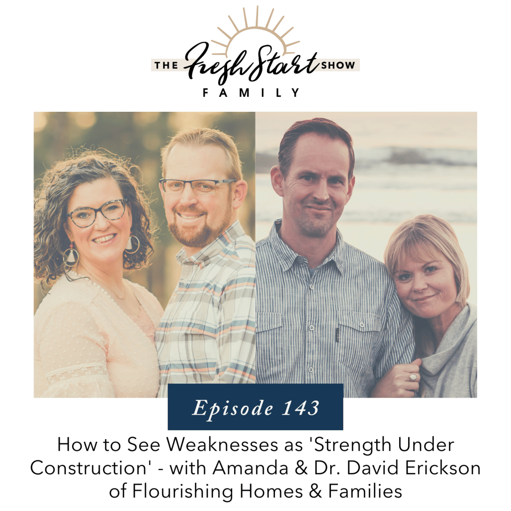 Well, hey there listeners, I’m so happy you’re here for a new episode. I’m your host, Wendy Snyder, positive parenting educator and family life coach, and I’m excited to bring you this episode today with our dear friends Amanda and Dr. David Erickson from Flourishing Homes and Families. And we had such a good talk, you guys, about how we can make sure we’re seeing the strength in our children’s weakness, which is such a really cool topic. We just had a really great discussion about it and at the end, we actually touched on why grace is superior to punishment, too. And I know you guys are gonna love this conversation.